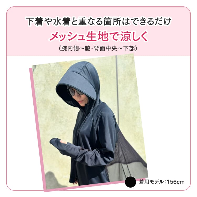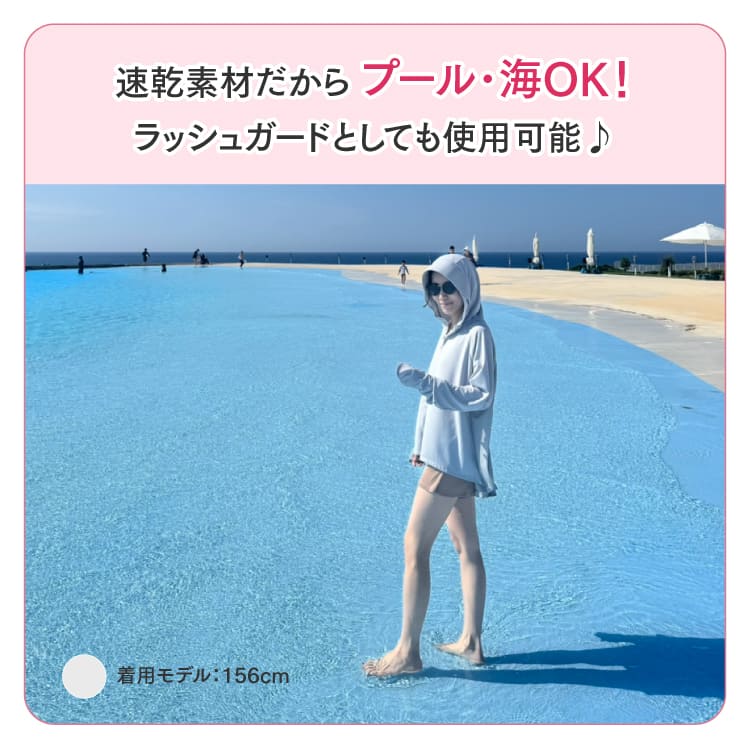 | 特徴 | 『紫外線を制する者は美肌を制する』 こちらの記事でも書いてますが、紫外線対策は常に3方向から徹底してください。 ①物理的遮光 ②塗る日焼け止め ③飲む日焼け止め ①を叶えるパーカーをフェイスカバーに続いて作りました! フェイスカバーと合わせて使えば紫外線を完全シャットアウト! こだわりポイント ①大きめフードが正面や横からの日差しをガード。ふんわり素材だから髪型も崩れません。 ②UVカット生地 UPF50+ (何もない時より50倍のUVカット効果、生地のUVカット基準の最高値) 吸汗速乾 (汗をすぐに吸収し、湿気がこもらず、すぐ乾くのでベタつかず涼しい) やわらかい肌触り (ダウンタイム時にも付けたいのでお肌に刺激がない生地を選びました) ③ファスナーは、肌摩擦の原因になるのであえて首まで ④下着や水着と重なる箇所はできるだけメッシュ生地で涼しく (腕内側~脇・背面中央~下部) ⑤手の甲までガードできる袖は、細かい作業も出来るように親指を出す穴が選べます。 ⑥お尻が隠れて体形が気にならないふんわり形状 ⑦速乾素材だからプール・海OK!ラッシュガードとしても使用可能 ⑧妊婦さんもご着用いただけます。 |