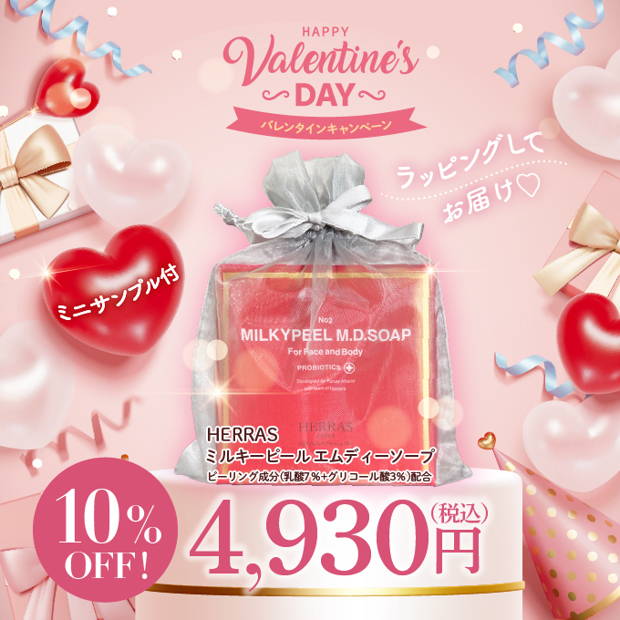 | 特徴 | Dr.AyaBeautySelectのバレンタインデー特別ラッピングでお届け!ラッピングとは別にミニソープも付いているから自分用にどうぞ♪ ■MDソープの特徴 全身ピーリングができる日本初の「乳酸」高配合の枠練り製法のピーリング石鹸です。 石鹸素地は100%植物油脂のため、乳酸7%+グリコール酸3%のAHA合計10%なのに、ひりつきを極限まで減らすことに成功。化学成分を一切使用していないため、敏感肌の方でも保湿しながら角質ケアができるスキンケア石鹸です。 洗顔後のしっとりとした手触りは、これまでのピーリング石鹸の概念を覆します。 ハイドロキノン・アルブチン・プラセンタの3つの高価美容成分も配合し、顔だけではなく全身の黒ずみケアなどにもご使用いただけます。 ※効果の実感には個人差があります。 加水分解コムギ・パラベン・防腐剤・酸化防止剤・合成着色料・合成香料は無添加です。 |